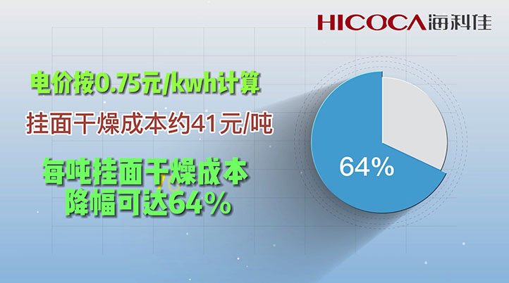 ◆ 電價按0.75元/kwh計算,約41元/噸,每噸掛面干燥成本降幅可達64%。