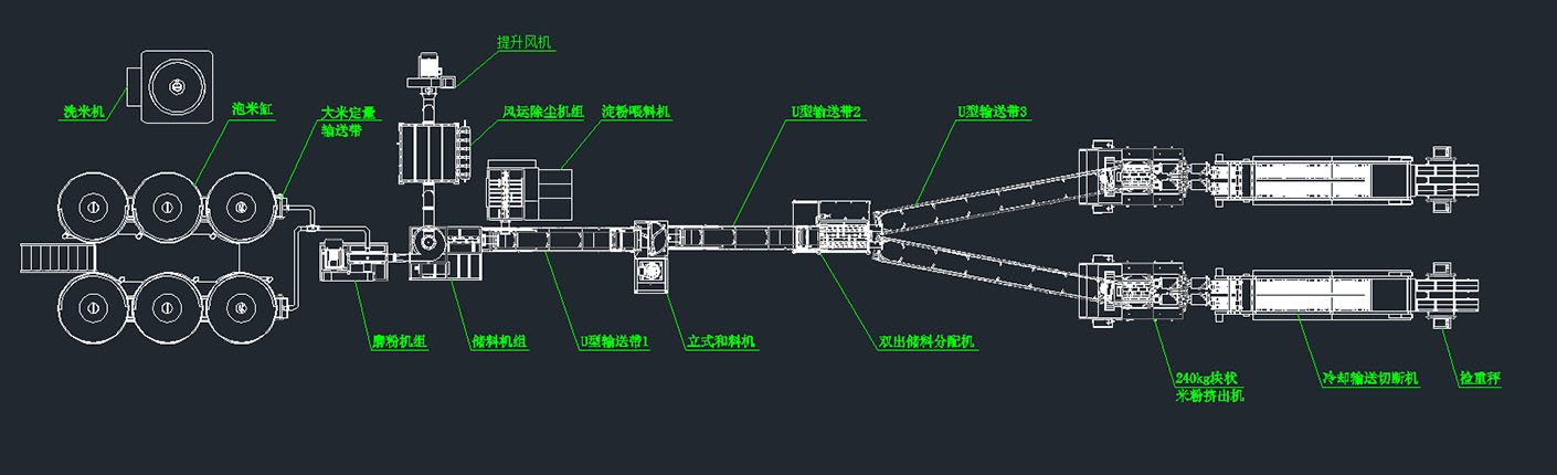概要信息:本產線采用制熟工藝原理制造。具有成熟的配下米-洗沖濾-磨粉-儲粉配粉-和粉醒粉-擠絲成型-切塊風冷定型-老化干燥功能于一體的生產工藝,產品呈圓柱形波紋塊狀,含水量14-15%,保質期18個月。全產線自動化集成度高,適配全米、復配、雜糧不同原料的波紋米粉的生產需求,生產效率與產品穩定性俱佳,具有優良的生產操作體驗。