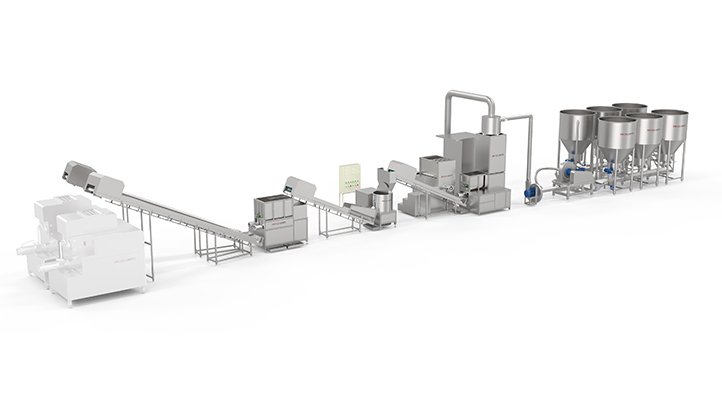 概要信息:本800型生產(chǎn)線采用制熟工藝原理制造。適用于發(fā)酵與非發(fā)酵、米粉熟化度90%以上,含水量13.5-14.5%、粉徑0.8-3mm、保質(zhì)期18個(gè)月圓柱形直條干米粉的生產(chǎn)。全程PLC控制,確保生產(chǎn)過程和產(chǎn)品質(zhì)量的穩(wěn)定性、一致性。 班生產(chǎn)用工4-5人,相比傳統(tǒng)產(chǎn)線節(jié)約人工70-80%,滿足了從配下米到切粉的全工段自動化生產(chǎn)過程。