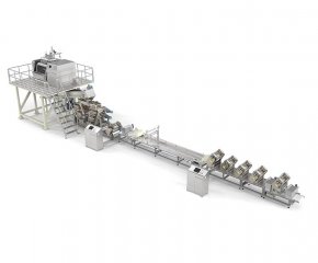 概要信息:應用于面片和面絮多層復合鮮濕面、半干面的全自動生產,實現從真空和面、面團熟化、片絮復合、連續壓延、卷軸熟化、切絲成型的全線全自動化生產過程,并可根據需求進行特殊規格定制。
