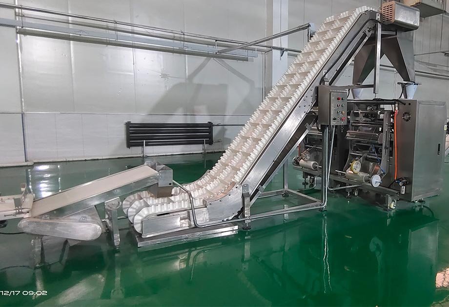 應用范圍:完成對鮮濕面、水餃、湯圓、小饅頭等類似產品的輸送、塑料袋包裝全過程。