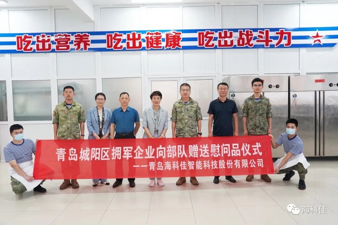 7月31日,在區委區政府的領導下,區科技局黨組書記局長紀玲玲,區退役軍人事務局黨組成員副局長李強帶領下,青島海科佳智能科技股份有限公司在北部戰區海軍某部舉辦贈送儀式,贈送智能手搟面機兩臺,為部隊官兵能夠吃上優質鮮面條提供裝備保障。