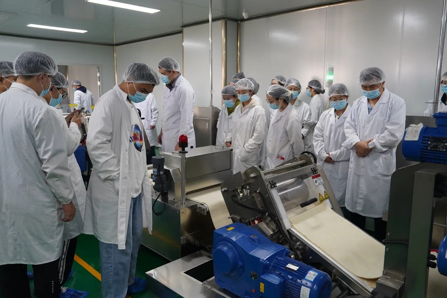 為讓學生更加直觀生動地展示食品設備的工作過程和創新技術,河南工業大學糧油食品學院搭建了糧食工程聯合實訓基地,青島海科佳制造的“智能鮮濕面生產線”、“非油炸擠出面生產線”、“全自動手延空心面生產線”、“仿生饅頭/包子生產線”、“智能水餃生產線”等面制主食產品裝備為實訓基地提供了堅實了裝備基礎,并與河南工業大學成立“食品工程聯合研發中心”
