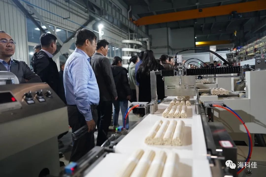在裝配車間現場,海科佳手延面自動化生產線、米粉生產線、鮮濕面生產線、饅頭生產線以及食品包裝連線穩定運行,讓大家切實感受到了現代化米粉制品生產裝備的先進創新性。