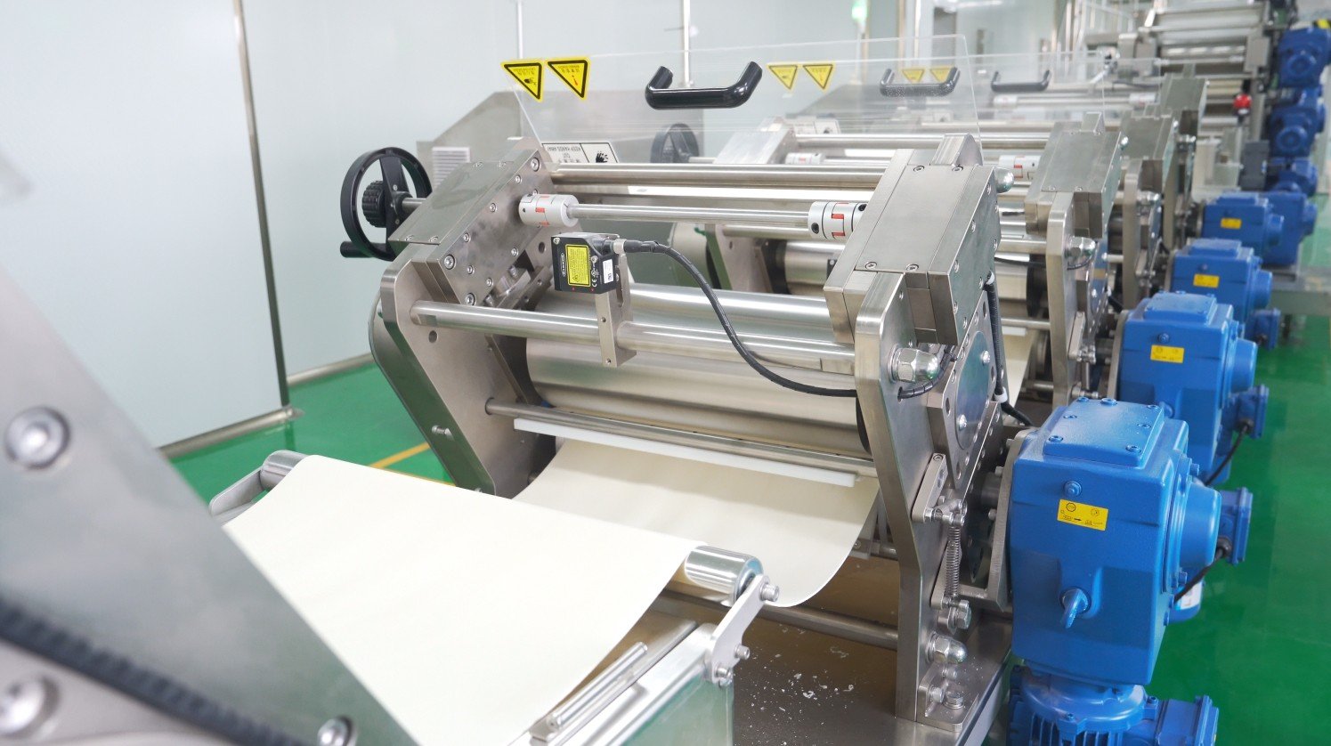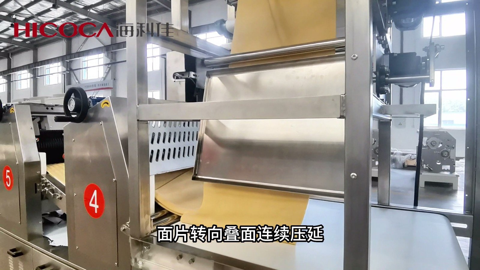 現(xiàn)階段,對(duì)于面片壓延的工藝也逐步在改善,具體有45°角折疊和變換壓延方向的方式在面制品加工工藝中采用的比較廣泛,這種處理方式有助于提升面帶的橫向和縱向拉斷力,對(duì)于面片韌性的提升也有促進(jìn)作用,進(jìn)一步使面條制品有較好的蒸煮品質(zhì)及口感。