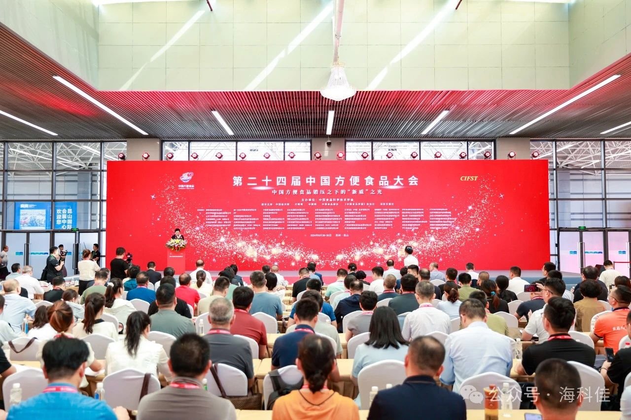 2024年8月29日,由中國食品科學技術學會主辦的“第二十四屆中國方便食品大會暨方便食品展”在昆山拉開序幕,本次大會以中國方便食品鍛壓之下的“新質”之光為主題。作為我國方便食品行業的年度盛會,大會邀請了院士、權威專家、行業企業代表等參與,通過權威報告、專題研討、趨勢發布和成果展示等多種方式,圍繞方便食品行業中方便面、掛面、冷凍食品、咸味香精調味料、機械設備等重要支撐板塊,展開深入交流。青島海科佳精彩亮相本次盛會,“全自動通心粉生產線”榮獲2023-2024年度中國方便食品行業創新產品。